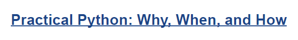 Buy a sample version of "Practical Python: Why, When, and How" for free.